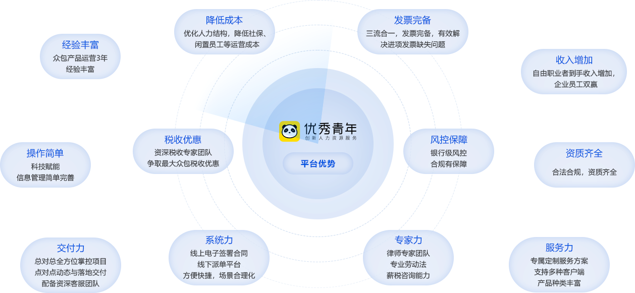 基于自主研發(fā)的任務(wù)眾包和結(jié)算平臺,為企業(yè)提供智能派單、薪稅合規(guī)和流程化管理等一站式解決方案,幫助企業(yè)優(yōu)化員工結(jié)構(gòu),專 注核心崗位,降低用工成本,將人才資源效益最大化。